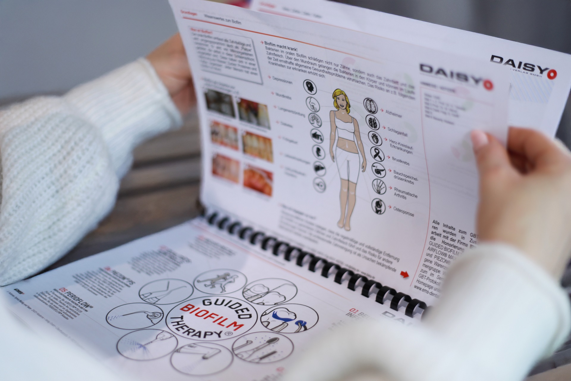 Die DAISY-Seminarmappe fasst alle relevanten Inhalte zusammen – eine ideale Gedächtnisstütze für den Praxisalltag mit Guided Biofilm Therapy.